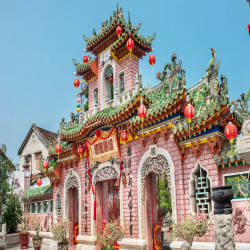 Từ đó, một số các công trình kiến trúc được xây dựng bởi người Hoa nhằm mục đích phục vụ cho đời sống văn hóa tinh thần, trong đó, không thể không nhắc đến Hội quán Phúc Kiến. Đây là một trong những công trình tiêu biểu nhất cho kiến trúc Trung Hoa với mái ngói âm dương, cổng tam quan truyền thống.
