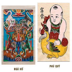 Một hình ảnh được tôn kính khác của tranh dân gian là con hổ, một hình ảnh linh thiêng và là biểu tượng của sức mạnh. Ở Việt Nam từng có nhiều hổ, được cho là có khả năng đánh bại ma quỷ. Hình ảnh con hổ ở cửa trước bảo vệ ngôi nhà khỏi các thế lực xấu.