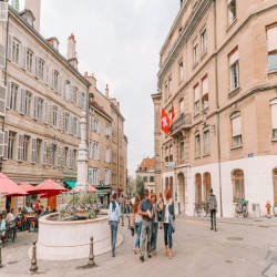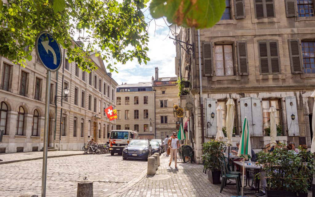 Bắt đầu khám phá Phố cổ từ Place de la Madeleine, một trong những nhà thờ lâu đời nhất của Geneva. Khu vực này cũng là một trong những hầm trú bom của Geneva, được xây dựng và năm 1929 có có sức chứa đến 1200 người. Mặc dù Thuỵ Sĩ trung lập trong WW2, nhưng vẫn không tránh khỏi những sai lầm của phi công: vào tháng 6 năm 1940, một trong những lực lượng đồng minh đã nhầm Geneva với Genova, và thả tám quả bom vào Champel, Plainpalais và Carouge, làm bốn người chết và hàng chục người bị thương.