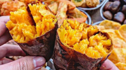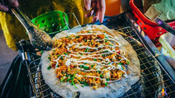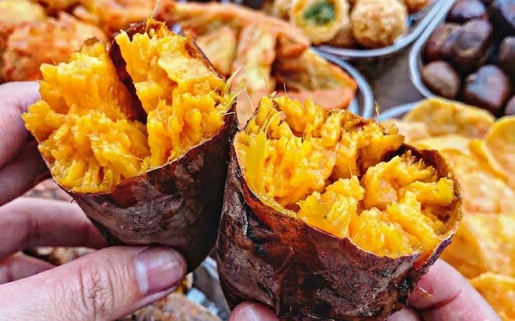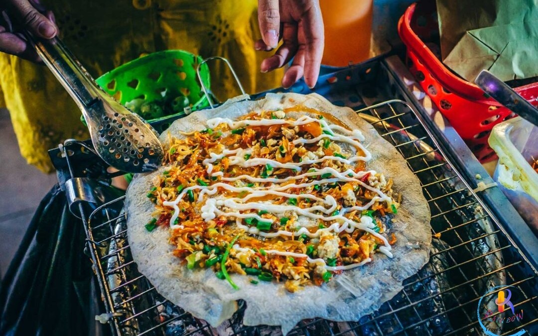 Ghé lại một góc phố nhỏ để tận mắt chứng kiến quá trình chế biến món Bánh tráng nướng trứ danh. Từ những nguyên liệu giản đơn như trứng, hành, tôm khô... trên bếp than hồng, tất cả tạo nên một hương vị "cuốn" đến lạ kỳ. Đừng quên nhâm nhi thêm một củ Khoai lang mật nướng nóng hổi, thơm bùi để cảm nhận trọn vẹn phong vị đường phố.