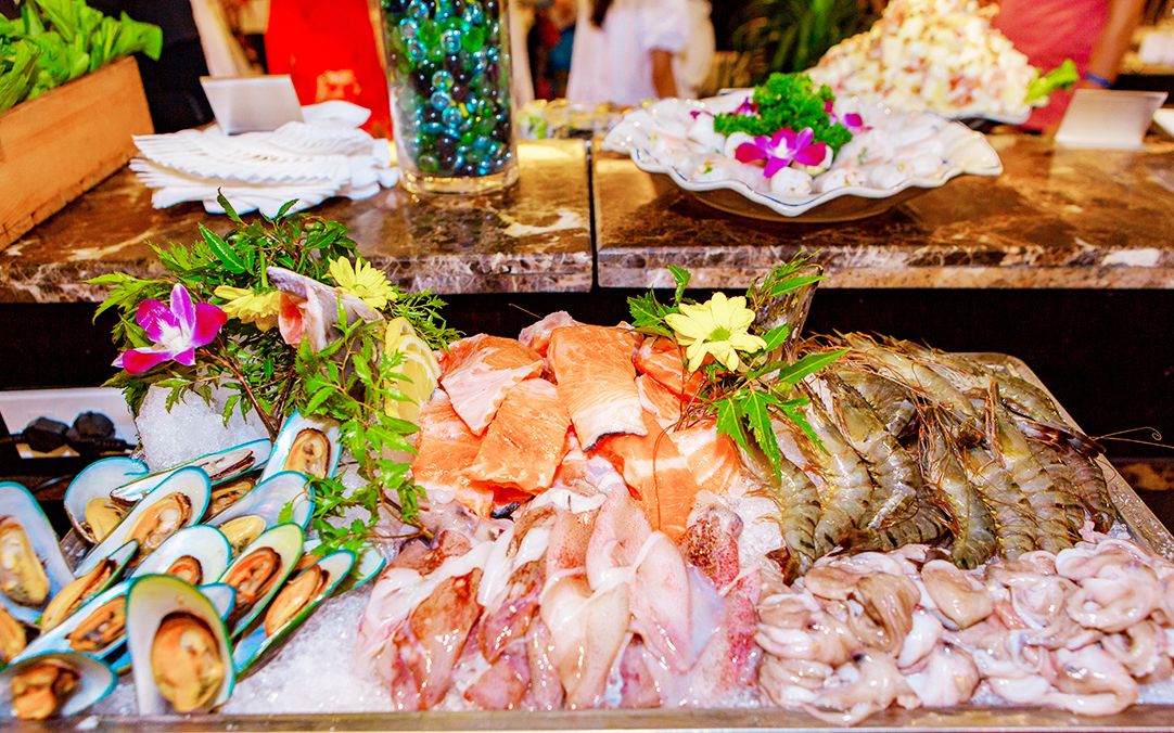 Onboard: Organic lunch & dinner with seafood and vegetarian options