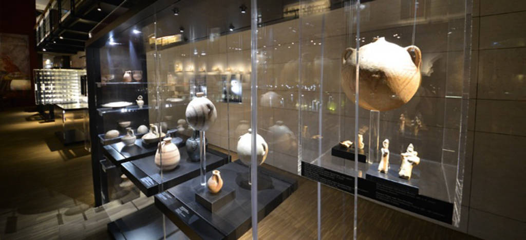 Gốm sứ đi vào cuộc sống hàng ngày ở Cận Đông bắt đầu từ năm 7000 trước Công nguyên. cho các mục đích lưu trữ, nấu nướng và vận chuyển, và được lan truyền nhanh chóng nhờ tính dễ sản xuất và khả năng chống nhiệt. Sự bền chắc của gốm đã cho phép nhiều tác phẩm được bảo tồn cho đến ngày nay. Trong số các tác phẩm gốm sứ mang đến cho chúng ta về những tiến bộ kinh tế, chính trị, xã hội và văn hóa của xã hội mà chúng được sử dụng. Những hiện vật gốm sứ đang được trưng bày bao gồm bình gốm miệng mỏ đặc trưng của thời đại đồ đồng Anatolian, nồi và chảo từ Đông Anatolia Van-Urmia và Urartu, và đồ gốm đắp Proto-Geometric từ Síp và Tây Âu. Gốm sứ thời kỳ La Mã được trưng bày trong bảo tàng với một bộ sưu tập phong phú về cuộc sống hàng ngày và văn hóa ăn uống trong thời  kỳ  này. Ngoài giá trị khảo cổ học, các đồ gốm được trưng bày còn giống với các tác phẩm nghệ thuật nhờ hình thức, màu sắc và cách trang trí của chúng. Phần trình bày làm nổi bật yếu tố niên đại, thuộc tính của từng tác phẩm và văn hóa mà nó thuộc về, đồng thời bối cảnh hóa lịch sử xã hội gắn liền với từng tác phẩm. Ví dụ, đồ gốm từ thời La Mã được trưng bày trong bối cảnh vai trò của chúng trong cuộc sống hàng ngày, cũng như các chủ đề như cuộc sống bên trong nhà bếp, ăn uống và các bữa tiệc.