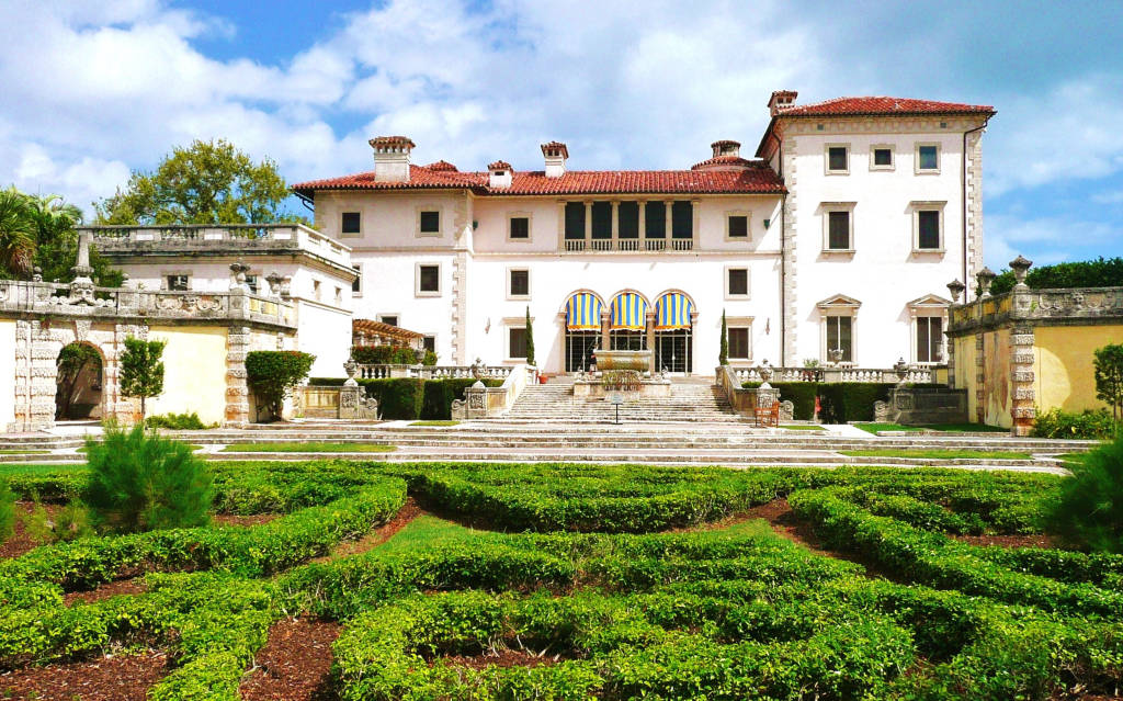 Khuôn viên dinh thự, nơi được công nhận là một di tích lịch sử quốc gia, rộng hơn 20 hecta (50 acre), được xây dựng vào năm 1916 bởi nhà tư bản công nghiệp James Deering làm nhà nghỉ đông cho gia đình. trong khuôn viên của Vizcaya bao gồm: những khu vườn Phục hưng Ý rộng lớn; cảnh quan rừng nguyên sinh; và một tổ hợp các toà nhà lịch sử.