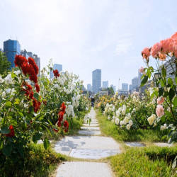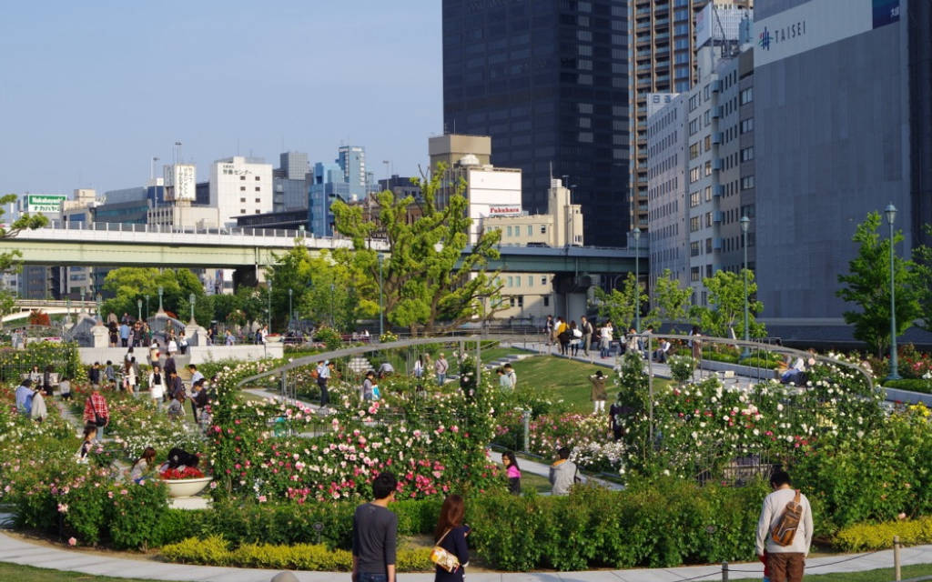 Vườn hồng là nét đặc biệt của công viên này. Với hơn 4000 loại hoa hồng khác nhau thuộc 89 giống, Công viên Nakanoshima là giai đoạn đầu tiên của Dự án Aqua Metropolis, nhằm biến thành phố Osaka thành 'Venice của phương Đông.' Vào cuối tuần, du khách đổ xô đến khu vực này để nằm dài trong ánh nắng mặt trời, cùng nhau đi bộ dưới bóng râm của đường cao tốc trên cao, và đắm mình tại khu vườn bia ven sông mở cửa vào những tháng mùa hè ấm áp hơn. Nơi đây vào cửa miễn phí và hoa hồng nở từ đầu tháng Năm đến đầu tháng Mười Một. Sau đó, khi mùa đông đến công viên đóng cửa cho đến đầu tháng 5 để cho phép cỏ nghỉ ngơi sau khi sử dụng liên tục trong những tháng mùa hè.