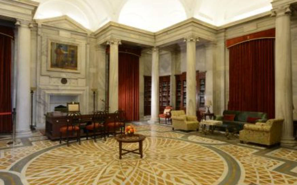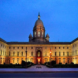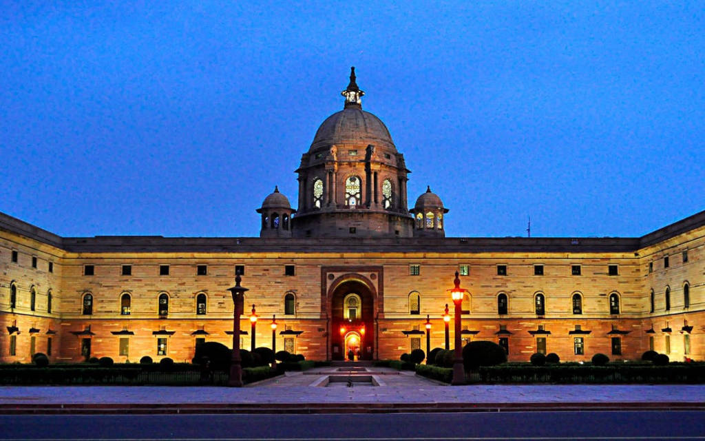 Rashtrapati Bhawan được xây dựng vào năm 1929, còn được gọi là Dinh thự Tổng thống hay Dinh Tổng trấn do trước đây, nó là nơi ở của Tổng trấn người Anh. Kỳ quan kiến trúc này được thiết kế bởi Edward Lutyens và Herbert Baker, xây dựng trong 17 năm. Vườn Mughal nổi tiếng chiếm diện tích khoảng 15 mẫu, có 159 giống hoa hồng, 60 giống hoa giấy và nhiều loại hoa khác. Ngoài ra còn có vườn thảo dược, vườn tâm linh, công viên nai, tháp đồng hồ,… Sau khi đi qua phần sân trước của khuôn viên, du khách sẽ bắt gặp tượng bò Rampurva, là phần đầu của một trong những cột chống được xây dựng vào thời vua Ashokan ở thế kỉ III trước Công nguyên