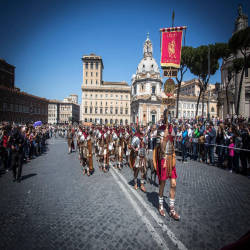 The highlight of the Natale di Roma, the grand parade, usually takes place along the Via dei Fori Imperiali, with more than 1,500 participants. The competition is organized by Gruppo Storico Romano, a historical dramatic society that has, for more than 20 years, brought back history by recreating battles, historical events and showcasing ancient theater and dance. in the city center.