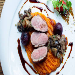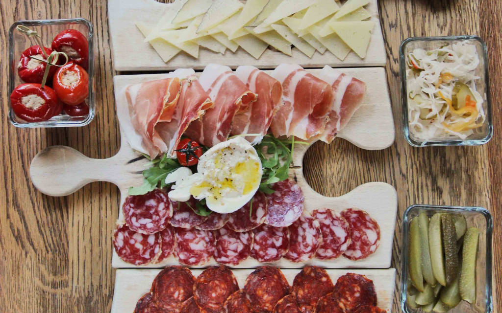 Thực đơn tại Divin Porcello đủ các món thịt nguội từ San Daniele của Ý, Pata Negra của Tây Ban Nha và giăm bông “mangalica” hun khói cổ điển cổ Hungary, cho đến Salame Felino của Ý hay chorizo của Tây Ban Nha kết hợp với “paprika salami” của Hungary. Những dĩa thức ăn nhỏ, những món thịt nướng, mì ống và cheese board được trình bầy một cách tinh tế luôn khiến Divin Porcello nổi bật giữa những nhà hàng món Ý khác trong thành phố. Một loạt các loại rượu vang cũng có sẵn để đi kèm với món ngon. Mỗi thực đơn tập trung vào một trong ba quốc gia nhưng thực khách cũng có thể lựa chọn theo sở thích và sự tò mò.