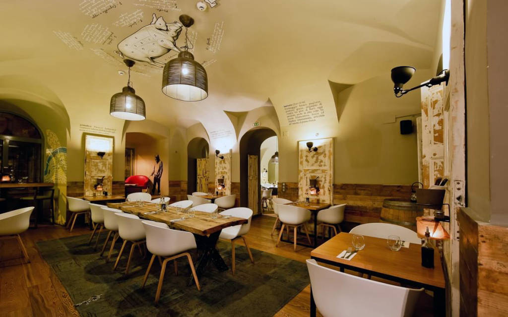 Divin Porcello là tiệm hambar ở trung tâm Budapest, nơi giao thoa của ba nền văn hoá ẩm thực. Nơi mà văn hoá tapas của Tây Ban Nha hoà hợp với rượu aperatifs của Ý kích thích khẩu vị và hương vị cay nồng của Hungary. Nhà hàng khai trương vào tháng 12 năm 2012 với mục đích tạo ra “một cái gì đó mới”, một nơi mà thực khách có thể thư giãn nếm thử một vào loại giăm bông hay cold cuts của ba quốc gia, hay tìm hiểu thêm về thế giới mì Ý và hương vị đặc trưng của ẩm thực Hungary.