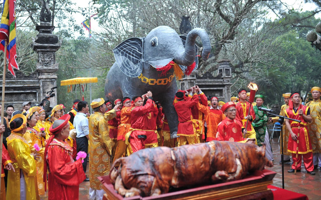 This festival takes place in Phu Linh commune, Soc Son district, Hanoi. This is where Saint Giong ascended to heaven. Some days before the festival, there is a special ceremony with lots of offerings. After that, everyone cleans the statue of Saint Giong the next day and prepares everything well for the main day.