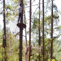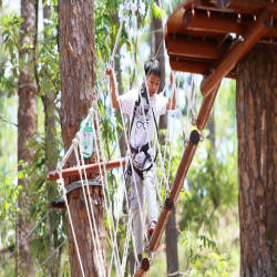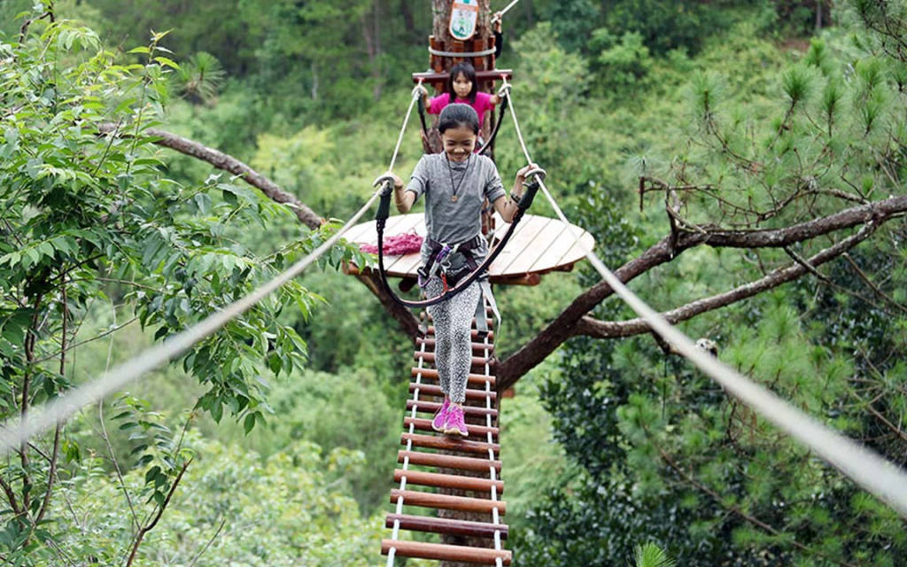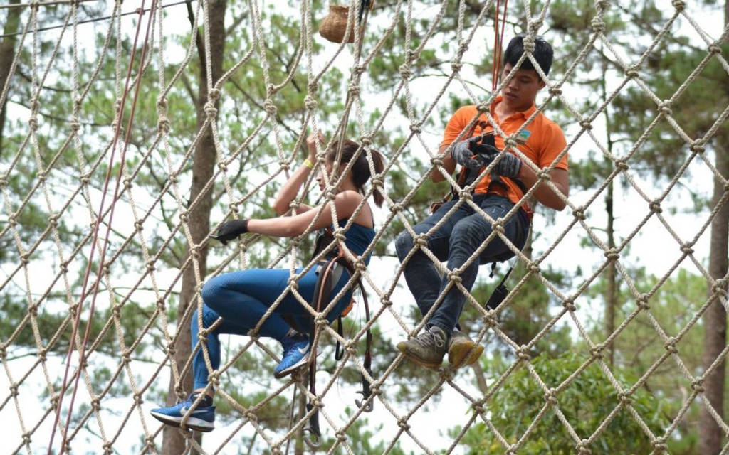 Có rất nhiều các trò chơi thú vị như leo cây, bám lưới nhện, bước đi trên không, đu dây… mỗi trò chơi là một cảm giác sợ hãi nhưng tất cả đều được thiết kế an toàn theo tiêu chuẩn Châu Âu. Ở đây các trò chơi chia làm nhiều cấp độ và có khu dành cho các trẻ em chơi nên phù hợp cho những gia đình có trẻ nhỏ. Bạn sẽ có thời gian 2 giờ để chinh phục các thử thách. Trước khi bắt đầu chơi, nhân viên ở đây sẽ sẽ giới thiệu đầy đủ về các quy tắc an toàn và cách sử dụng đúng các thiết bị an toàn. Mọi người chơi đều được bảo vệ kép bằng hệ thống an toàn ngăn chặn lẫn nhau. Khi đã thành thúc với các động tác, sử dụng quen các thiết bị an toàn, bạn sẽ được chinh phục các cấp độ các trò chơi tại đây:
