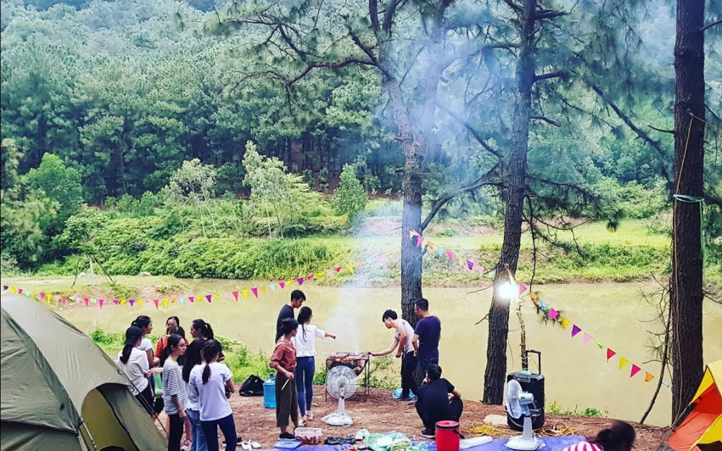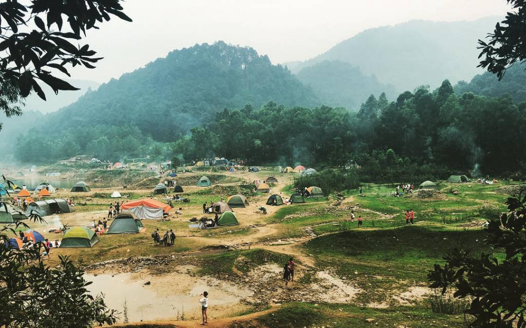In addition, Nui Bau lake with flat terrain located at the foot of the mountain is a suitable place for fun camping trips. Nui Bau Lake, located between Pine and Green Acacia hills, is a large and beautiful lake. Looking down from above, Nui Bau is like a smooth silk strip in the middle of the wild suburbs, lost in the busy flow of Hanoi. Around the lake is a pine forest with golden sunshine, a peaceful, calm and windy scene.