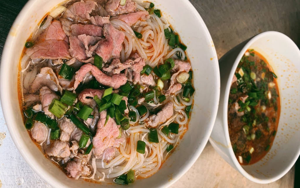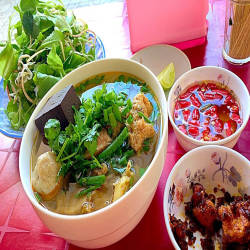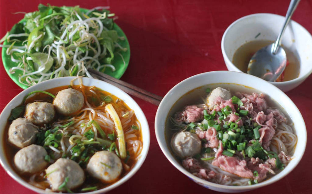 Nước bún ở đây thì chuẩn vị đậm đà, tô bún to đùng, giò hầm không quá cứng hay quá mềm. Chả viên cục nào cục ấy bự, ngọt nhưng không ngán, món chả quết đầy ấn tượng.