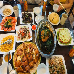 Located a few hundred meters from Ninh Binh station, Trung Tuyet restaurant gives a friendly, cozy feeling. Diners will enjoy food in a close space at the ground floor area of a 2-storey house, where a small family of many generations lives. All members of the family participate in the stages from preliminary processing, cooking to serving diners. The restaurant specializes in serving traditional Vietnamese dishes, specially seasoned according to the unique flavor of the ancient capital, giving diners unforgettable culinary experiences. After the meal, the host will give their valued guests small, lovely gifts to mark a memorable moment at the restaurant.