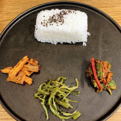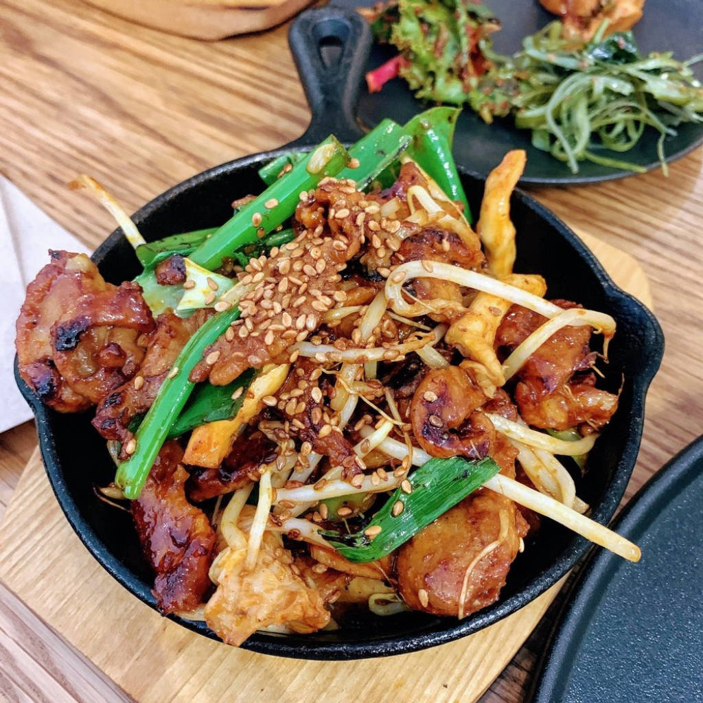 Tại đây bạn có thể dễ dàng tìm thấy cho mình những món ăn khoái khẩu như: những chiếc bánh bao mập mạp với nhân bên trong là đậu phụ, khoai tây, giá đỗ, hẹ tây, tỏi hoặc thịt lợn cho phiên bản nhiều thịt. Hoặc bạn có thể sẽ bị say đắm bởi món đặc trưng của quán: Gu jeol pan. Gu jeol pan theo truyền thống là món ăn được phục vụ trên các bàn tiệc của hoàng gia vì nó quá đẹp, nhưng bất kỳ người bình thường nào cũng có thể gọi món này ngay tại đây. Bảy loại rau củ và thức ăn bao gồm cà rốt, bí xanh, nấm hương, dưa chuột và củ cải đường tẩm gia vị kết hợp với thịt bò và trứng được xếp xung quanh một xấp bánh kếp mới hấp được nhuộm hồng bằng nước củ dền. Khi nhìn thấy dĩa thức ăn được bày ra trước mắt, bạn sẽ cảm tưởng như đây là bảng màu của họa sĩ nhưng bạn có thể ăn chúng. Thực đơn đặc biệt còn có gà rán ba chỉ kiểu Hàn Quốc, bibimbap tuyệt vời được phục vụ trong bát đá dolsot.