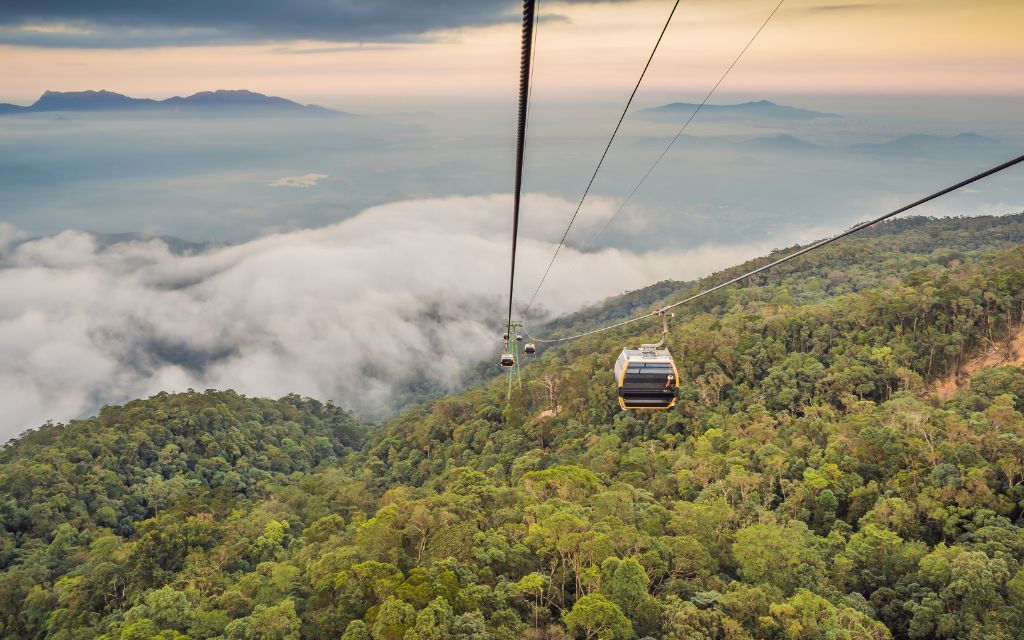 Đi cáp treo Bà Nà giữ 4 kỷ lục thế giới, ngồi trên cáp treo Bà Nà, du khách sẽ được hòa mình vào thiên nhiên hùng vĩ, chiêm ngưỡng hình ảnh muôn màu của những dãy núi xanh mênh mông phủ đầy mây trắng trên đỉnh Núi Chúa. Tham quan Cầu Vàng, hầm rượu cổ Debay, vườn hoa D'Lamour, chùa Linh Ứng.