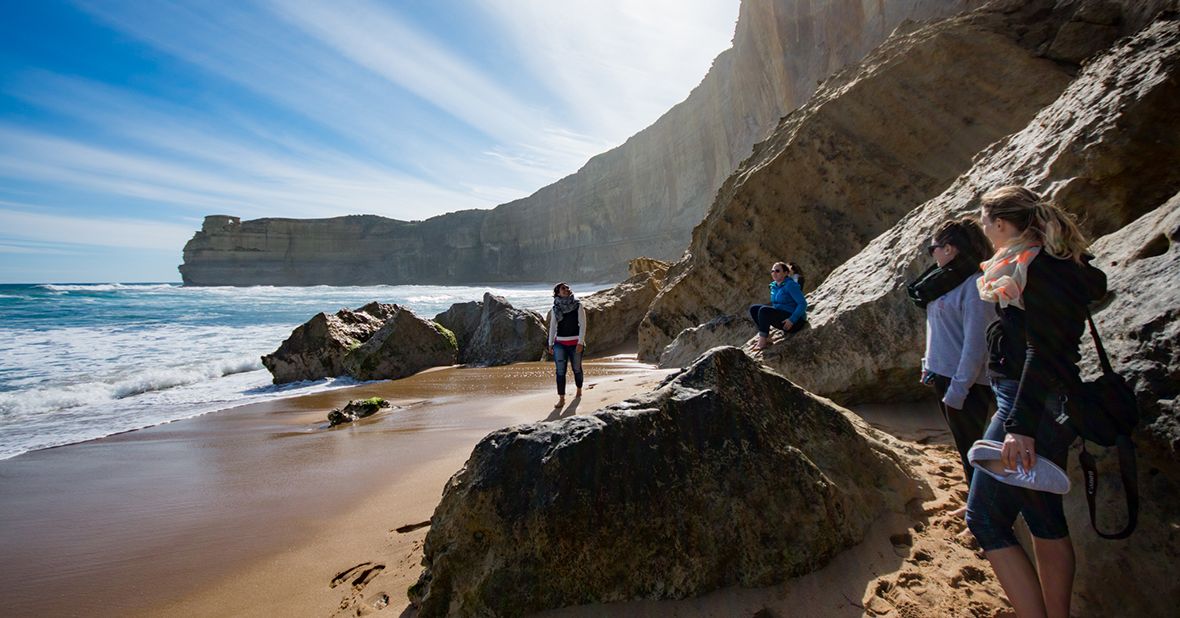 One of the most spectacular coastal drives in the world can be found on this Great Ocean Road tour! As we leave Melbourne, we cross the West Gate Bridge, a bridge that spans the width of the Yarra River, providing a link between the capital of Victoria and the second-largest city in the state of Victoria, Geelong. Upon arrival in Anglesea, we get the first glimpse of our breathtaking southern coastline views; from here, we will twist and turn our way along one of the world's most spectacular coastal drives, which is listed as a National Heritage site. Throughout the drive, there will be plenty of opportunities to capture some awesome images, including the historic Memorial Arch at Eastern View and the introduction to the Great Ocean Road drive. It is advisable that you keep your eyes open as you pass through beachside towns such as Aireys Inlet, Lorne, Wye River and Kennett River in order to search for Australian wildlife, as you never know what you might come across. Guests will have time to explore and support the local economy of Apollo Bay as this is our lunch stop before heading into the Great Otway National Park to walk amongst towering ancient rainforest habitats. The afternoon will be filled with marvelling at the shipwreck coastline and gigantic limestone stacks, known as the 12 Apostles. As well, the cliff-side beaches of Loch Ard Gorge form part of the Port Campbell National Park, which has been carved out of the wild southern ocean over a period of time. A visit to the Great Ocean Road and the scenic locations that we visit along the way is one of the most beautiful experiences you can have when visiting Victoria.