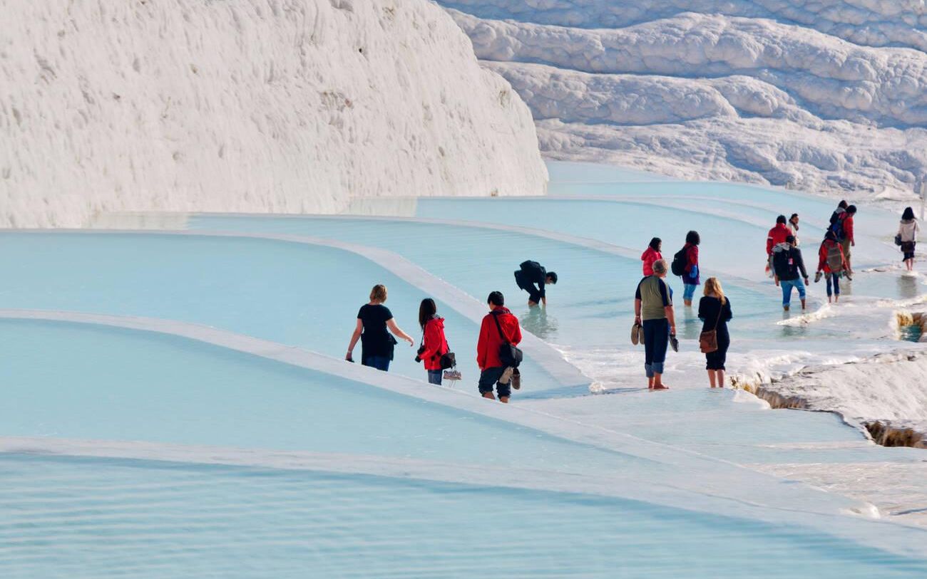 - Ghé thăm Pamukkale - Hồ thiên đường trên Trái đất… Pamukkale luôn là một khu định cư rất nổi tiếng, nơi suối nước nóng được cho là có khả năng chữa bệnh nên được coi là spa sớm nhất trên trái đất, nơi trong lịch sử mọi người đã đi rất xa để tìm cách chữa trị . Ruộng bậc thang độc đáo được hình thành bằng cách cho nước suối ấm chảy ở nhiệt độ 35 độ C, có chứa canxi bicarbonate. Ngày nay Pamukkale được UNESCO công nhận là di sản thế giới.
