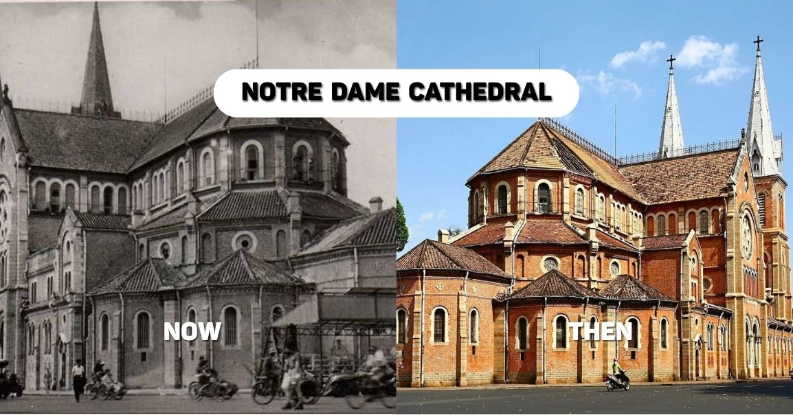 Nhà thờ Đức Bà & Bưu điện Trung tâm – đối chiếu ảnh xưa và tự chụp ảnh hiện tại.