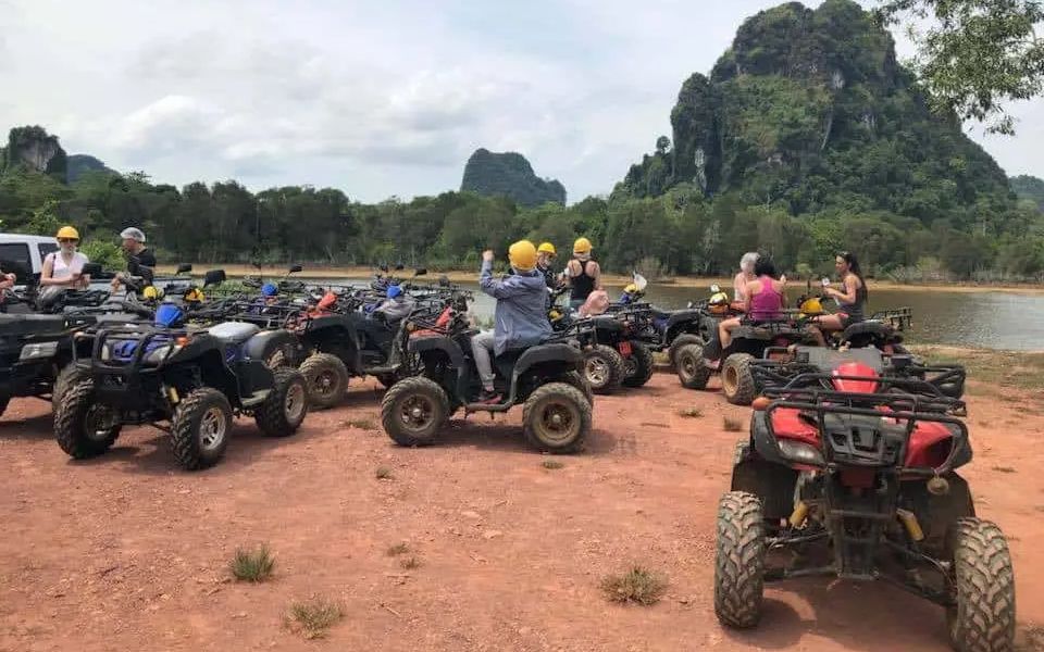 Khám phá Krabi xinh đẹp và thỏa mãn sở thích phiêu lưu của bạn trong chuyến tham quan ATV (xe địa hình) có hướng dẫn viên chuyên nghiệp này. Khởi hành từ các khách sạn trong thành phố, đi theo đường cao tốc rợp bóng cây vào sâu trong vùng nông thôn miền núi Krabi, nơi cuộc phiêu lưu ATV kéo dài một giờ của bạn bắt đầu. Phù hợp với mọi lứa tuổi, chuyến tham quan táo bạo nhưng dễ dàng này đưa bạn vào trung tâm của cảnh quan tuyệt đẹp độc đáo của Thái Lan, dọc theo những con đường mòn gập ghềnh và với mái tóc tung bay trong gió.