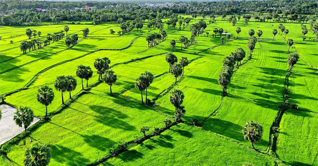Chụp ảnh lưu niệm với cánh đồng Thốt Nốt.