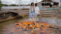 Làng cá bè Cồn Sơn: Massage cá Koi, thưởng thức chá cá thác lác nhà làm trên bè.