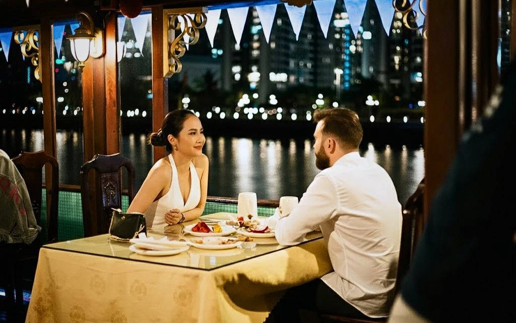 Điểm nhấn là bữa tối trên du thuyền Indochina Queen, nơi du khách thưởng thức ẩm thực cao cấp, nhạc sống và ngắm nhìn sự lung linh của dòng sông Sài Gòn. Với những món quà và kỷ vật ý nghĩa, các cặp đôi không chỉ ra về với những bức ảnh đẹp mà còn lưu giữ những kỷ niệm khó quên về một buổi tối kỳ diệu bên nhau giữa lòng thành phố.