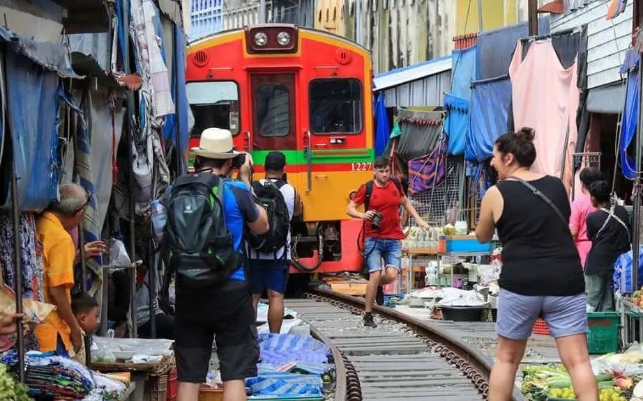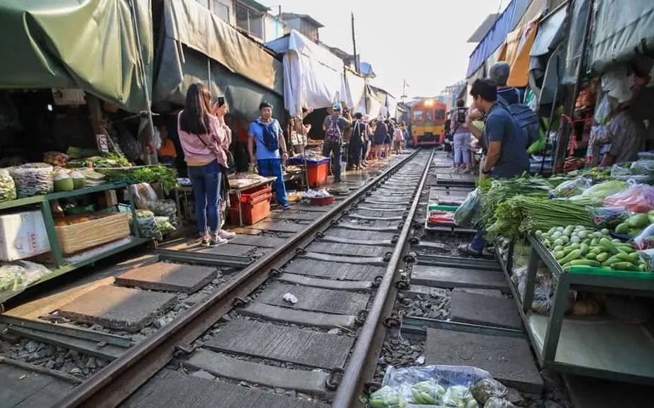 07:30 Khởi hành từ Bangkok đến Chợ đường sắt Maeklong (Chợ ô gấp). Có lẽ là chợ tươi sống thú vị nhất thế giới vì tàu hỏa sẽ chạy qua trung tâm chợ 8 lần một ngày. Sau đó khởi hành đến Chợ nổi Damnoen Saduak.