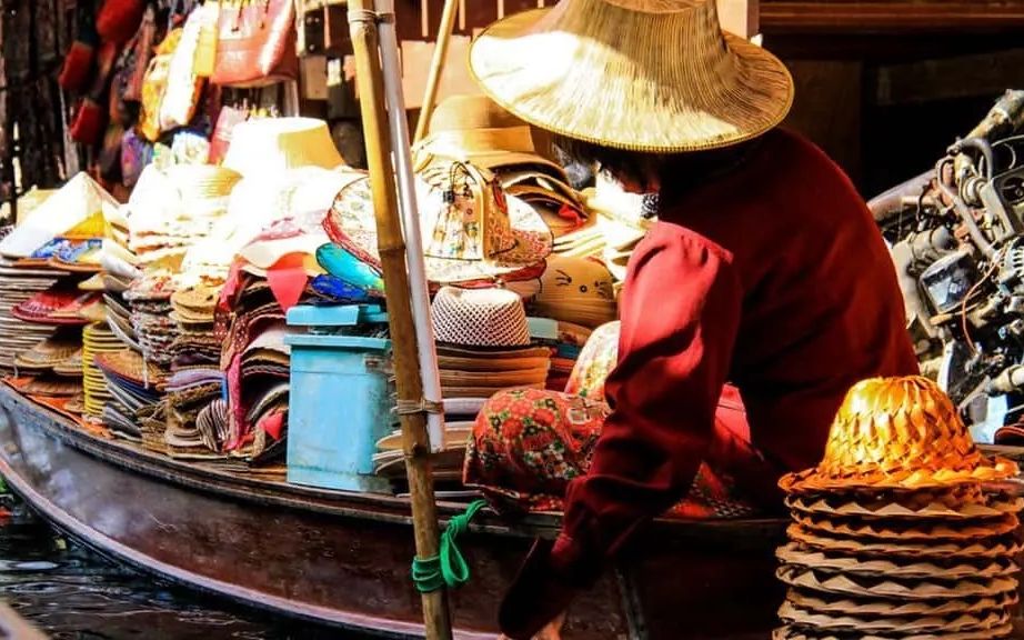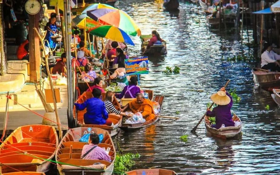 09:30 Đến bến thuyền đuôi dài, đi thuyền đuôi dài (10 phút) đến khu vực chính của chợ. Đi bộ quanh chợ để xem các sản phẩm thủ công mỹ nghệ địa phương hoặc đi thuyền chèo (30 phút, trả thêm 150 THB).