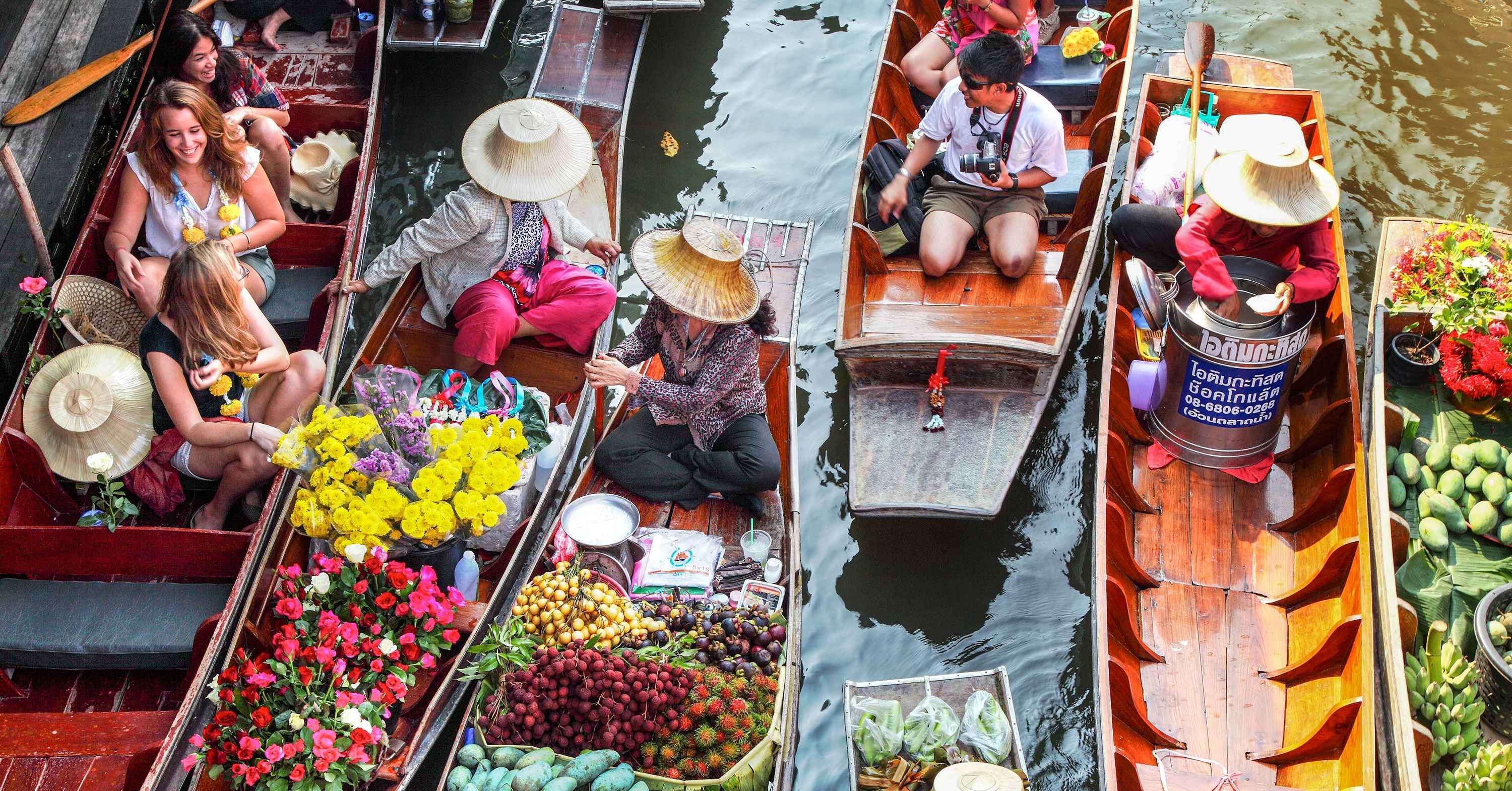 Trải nghiệm cuộc sống địa phương tại Thái Lan với tour du lịch nhóm nhỏ này từ Bangkok đến hai khu chợ khác nhau. Đi thuyền quanh các gian hàng trên một chiếc thuyền đuôi dài tại Chợ nổi Damnoen Saduak và đi tàu đến Ga xe lửa Mae Klong, nơi có một khu chợ nằm trên và xung quanh đường ray xe lửa.