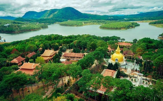Trên đường trở về, hãy dừng chân tại Thiền viện Trúc Lâm, thiền viện lớn nhất Việt Nam, nổi tiếng với không gian thanh bình, khu vườn xinh đẹp và tầm nhìn toàn cảnh ra hồ.