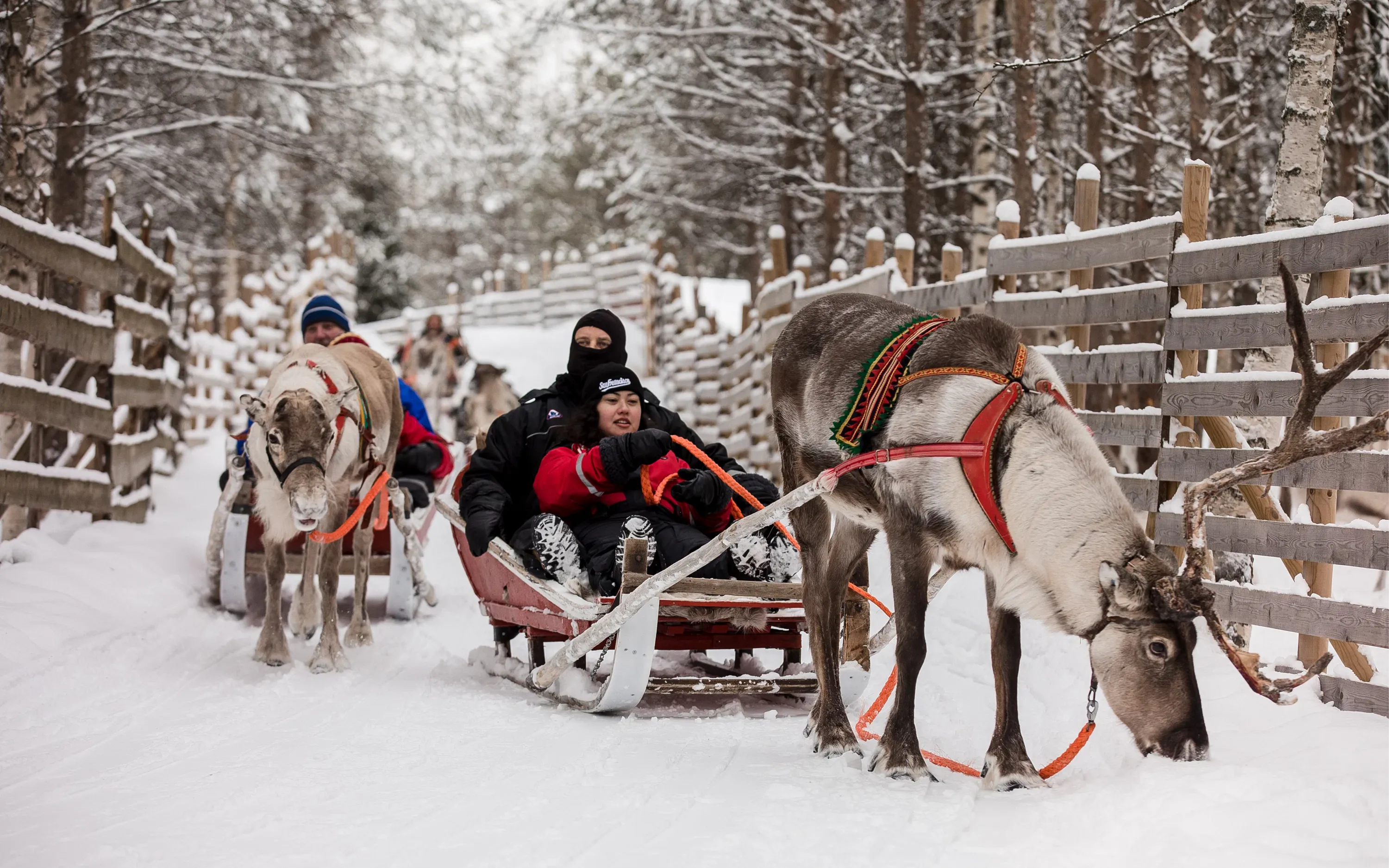 Sau đó, bạn sẽ no bụng với bữa tiệc buffet truyền thống của Phần Lan. Sau bữa trưa, xe tuần lộc đang đợi bạn ở bên ngoài để dẫn bạn đi tham quan Rừng Lappish kỳ diệu. Theo những con đường mòn đầy tuyết, bạn sẽ phải đi xe khoảng 1 km. Hãy nhớ chụp những bức ảnh đáng nhớ trong suốt chuyến đi nhé!