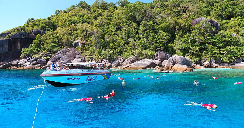 Trên tàu cao tốc, lướt nhanh qua những con sóng đến quần đảo Similan, nơi Đảo số 5 và số 6 mang đến cho bạn hương vị đầu tiên của xứ sở thần tiên dưới nước. Chứng kiến một loạt các màu sắc bên dưới những con sóng khi cá bơi quanh co qua các rạn san hô.