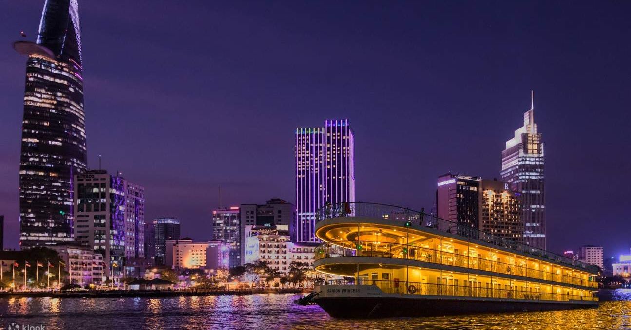 Tận hưởng một buổi tối khó quên trên du thuyền sông Sài Gòn quyến rũ, nơi khung cảnh ngoạn mục của đường chân trời lấp lánh của thành phố tạo nên phông nền hoàn hảo. Khi bạn nhẹ nhàng trôi theo dòng nước, hãy thưởng thức bữa tối được lựa chọn kỹ lưỡng với ẩm thực Việt Nam chính thống, được chế biến từ các nguyên liệu tươi ngon địa phương. Hãy để hương vị làm hài lòng khẩu vị của bạn trong khi đội ngũ chuyên nghiệp của chúng tôi đảm bảo một trải nghiệm liền mạch và đáng nhớ. Buổi tối trở nên sống động với các chương trình biểu diễn trực tiếp hấp dẫn - từ âm nhạc truyền thống đến các điệu nhảy uyển chuyển - tạo nên bầu không khí mê hoặc, pha trộn giữa văn hóa, lãng mạn và thư giãn. Dù bạn đang kỷ niệm một dịp đặc biệt hay chỉ đơn giản là tìm kiếm một đêm kỳ diệu tại Thành phố Hồ Chí Minh, chuyến du thuyền ăn tối này hứa hẹn một chuyến đi thực sự khó quên.