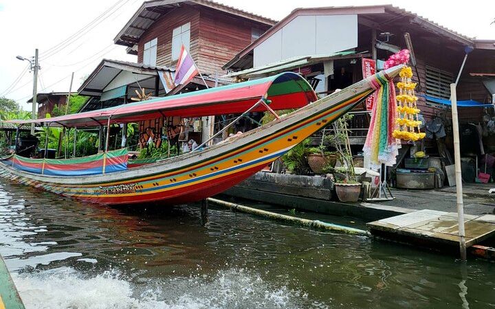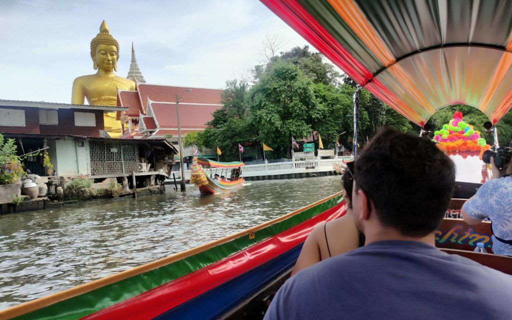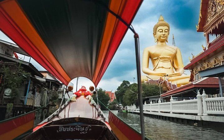 Trong suốt 2 giờ, bạn sẽ lướt qua các kênh đào của Thonburi, nơi từng là trái tim của Thái Lan, trên chiếc thuyền đuôi dài cổ điển. Chứng kiến cuộc sống sôi động trên kênh đào: người già ở nhà, phơi đồ, trẻ em bơi lội. Khám phá Baan Silapin, ngôi nhà của một nghệ sĩ 200 tuổi trở thành thiên đường văn hóa. Ngạc nhiên trước bức tượng Phật khổng lồ của Wat Paknam, cao chót vót trên mặt nước ở độ cao gần 70 mét.
