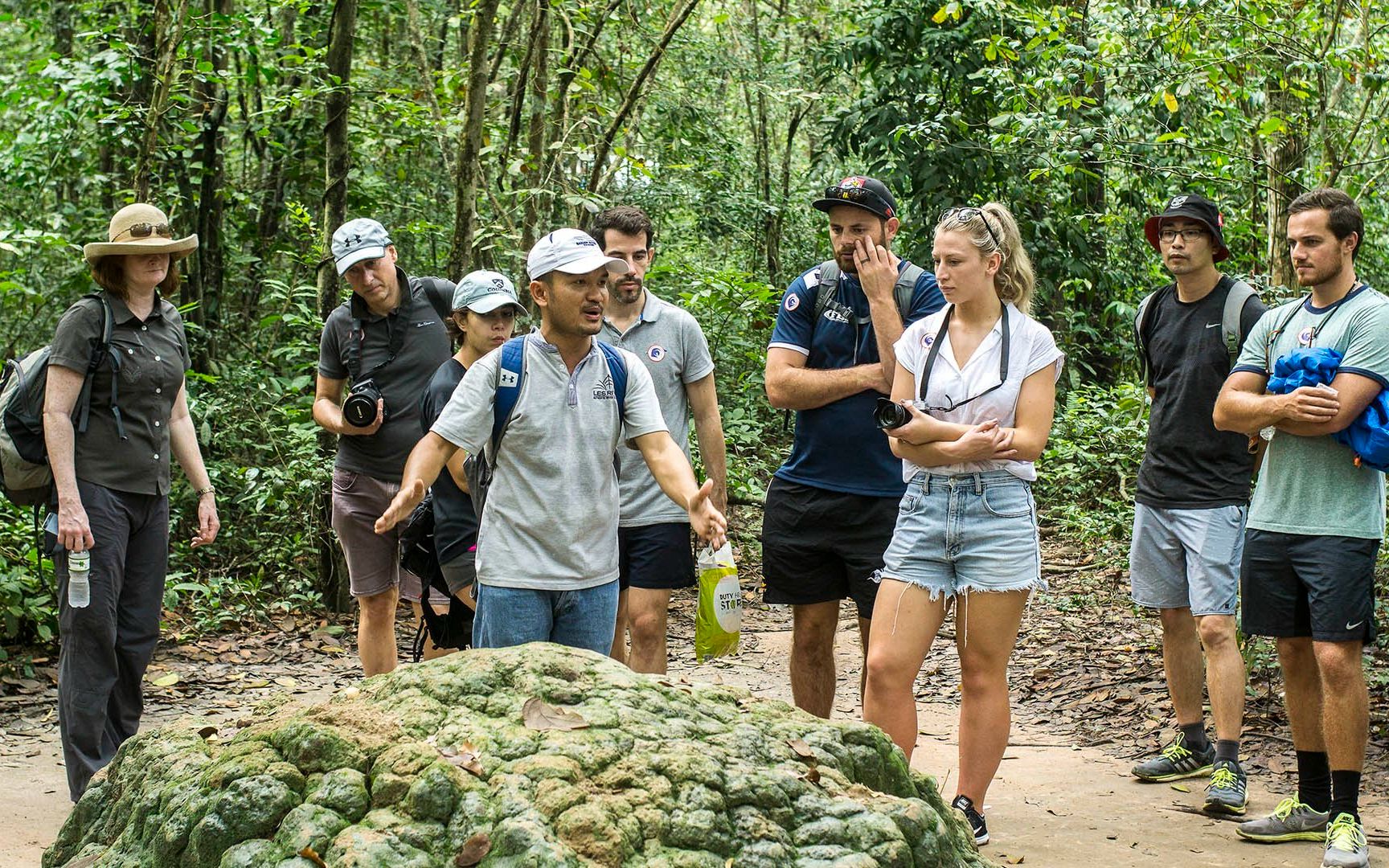 Khám phá Địa đạo Củ Chi với hướng dẫn viên du lịch giàu thông tin. Đi xuống lòng đất để khám phá hệ thống đường hầm, đi bộ quanh rừng và thử sức mình ở trường bắn.