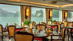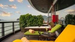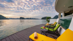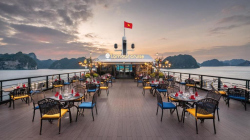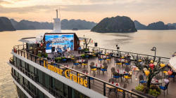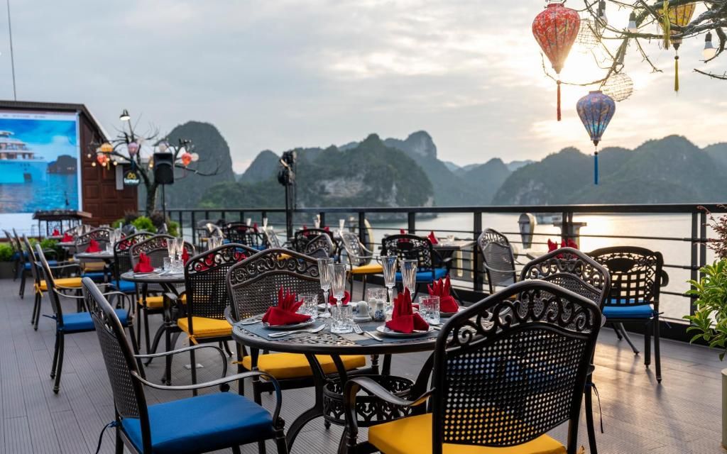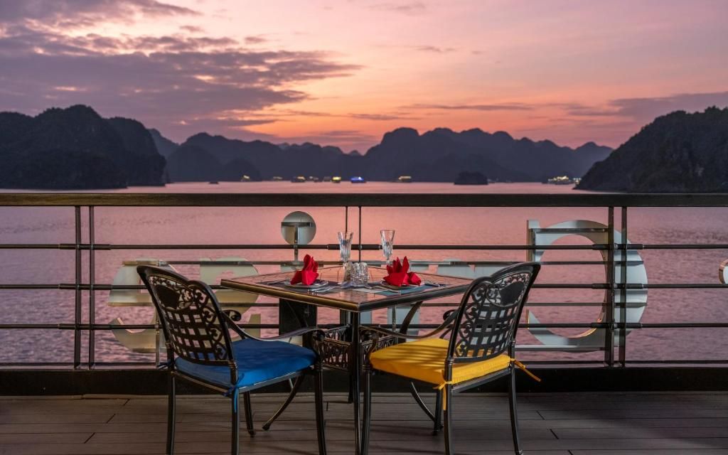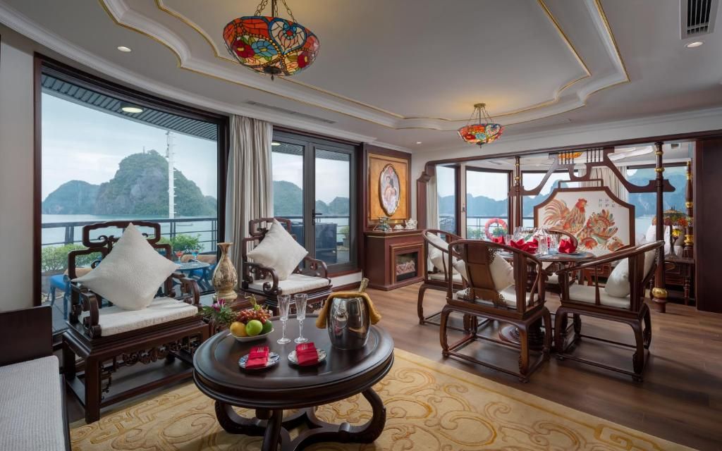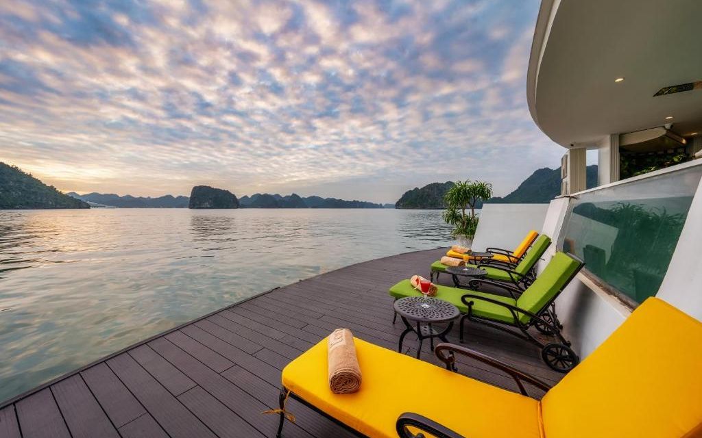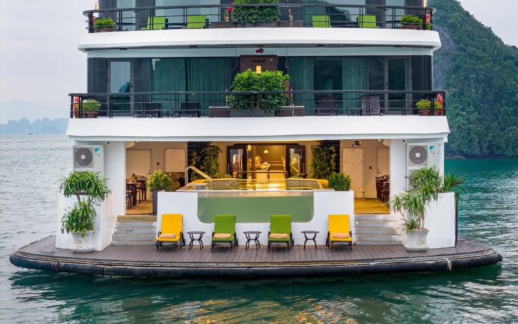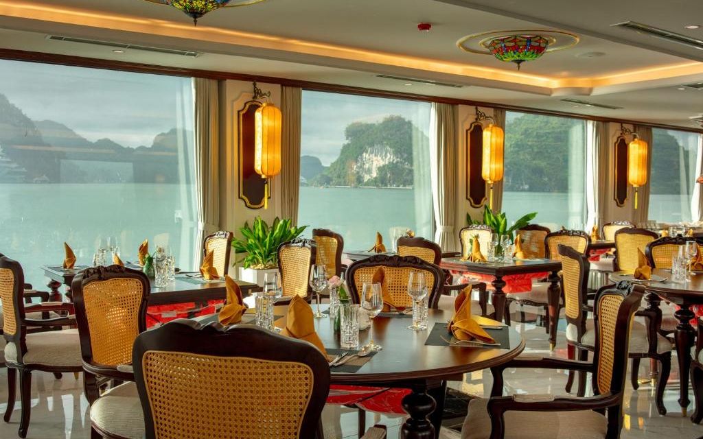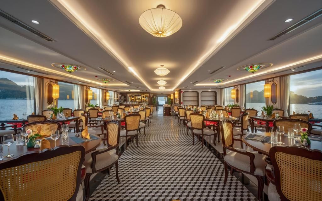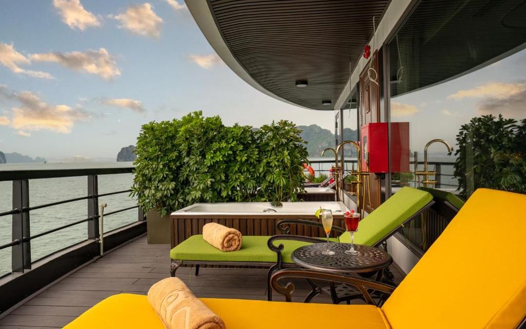 Du thuyền sở hữu hệ thống cabin sang trọng, nhà hàng Hoa Lư mang phong cách cung đình Việt, bể bơi Jacuzzi bốn mùa, sundeck rộng gần 1000m² với view toàn cảnh di sản. Hành trình 2 ngày 1 đêm đưa du khách tham quan các điểm nổi bật nhất của vịnh như Hang Sửng Sốt, Hang Luồn, kết hợp các hoạt động trải nghiệm như kayak, Tai Chi, lớp học nấu ăn, câu mực đêm.