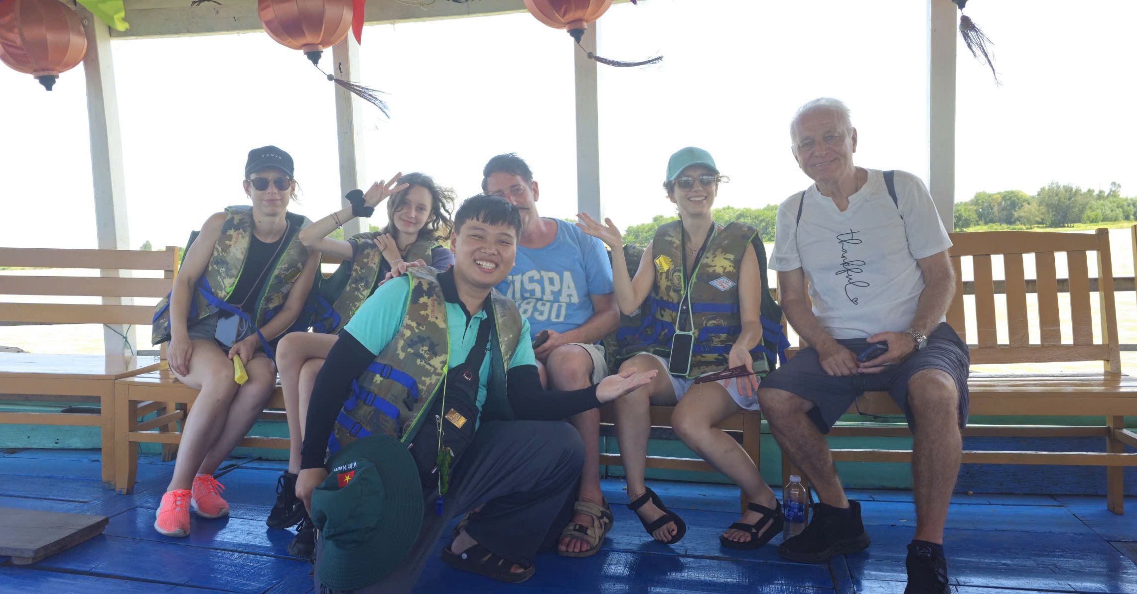 11 giờ sáng, xe buýt đưa chúng tôi rời Mỹ Sơn đến nhà dân địa phương để ăn trưa. Trên đường về khách sạn, chúng tôi có 50 phút tận hưởng không khí trong lành và ngắm cảnh sông nước trên thuyền gỗ trên sông Thu Bồn. Kết thúc chuyến tham quan.