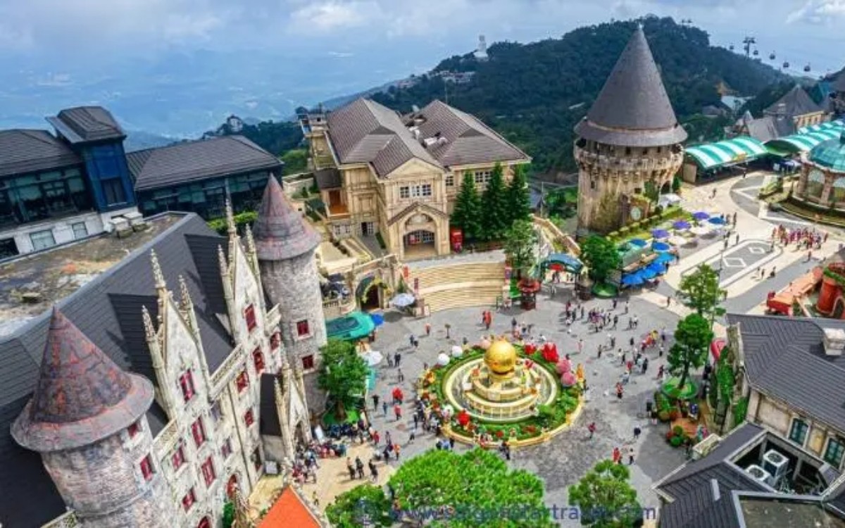 Quay lại ga, đoàn tiếp tục di chuyển bằng cáp treo đến Làng Pháp. Tại đây, bạn sẽ có thời gian dùng bữa trưa buffet tại nhà hàng và nghỉ ngơi trước khi tiếp tục hành trình chinh phục đỉnh núi Chúa ở độ cao 1.487 m – điểm cao nhất của Bà Nà Hills.