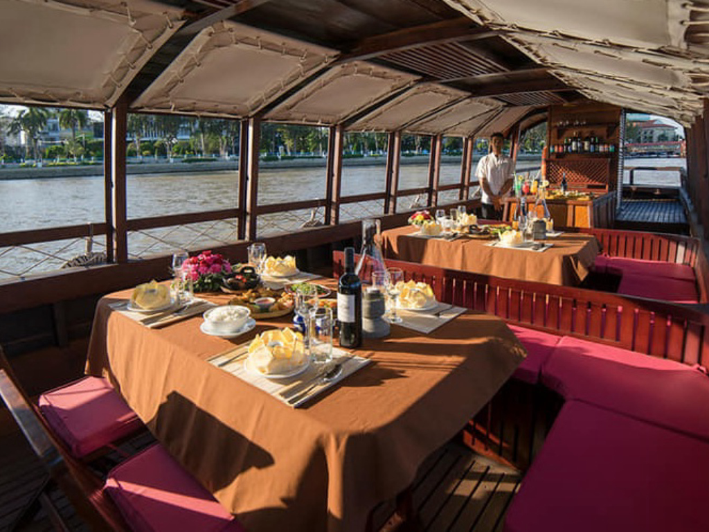 Start your morning at Cần Thơ Old Market with a leisurely breakfast onboard as you watch the bustling life on the riverbanks. The Mystic Sampan then takes you deep into the heart of the Cái Răng Floating Market, where you’ll weave between the colorful trader boats, experiencing the sights and sounds of one of the Mekong's most famous markets. Visit a traditional floating rice noodles house and meet a local pineapple trader, learning about the unique ways of life on the water. After a memorable exploration, the sampan returns you to Cần Thơ, completing your picturesque morning on the Mekong