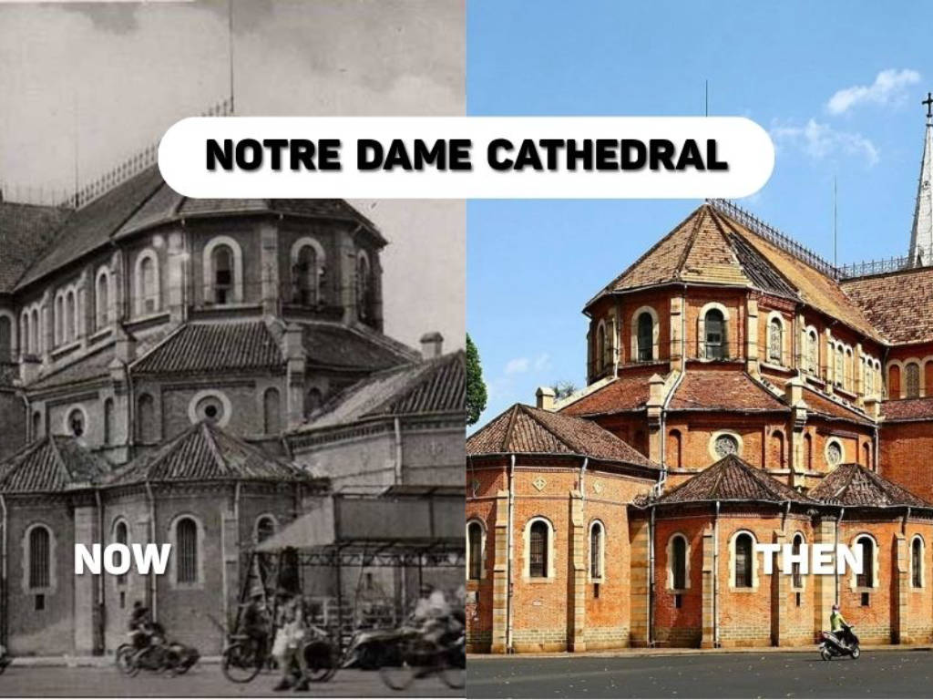 Nhà thờ Đức Bà & Bưu điện Trung tâm – đối chiếu ảnh xưa và tự chụp ảnh hiện tại.