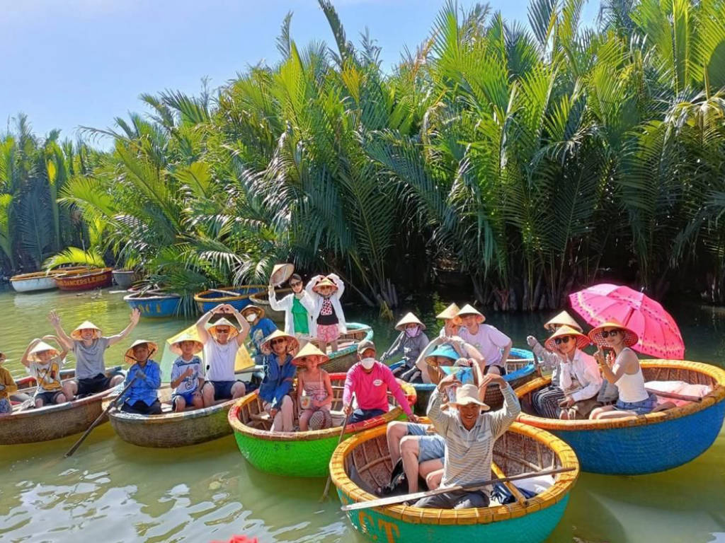 10:30 / 15:30: Chèo thuyền thúng tre qua rừng dừa nước, xem biểu diễn thuyền thúng, câu cua và làm con vật lưu niệm từ lá dừa