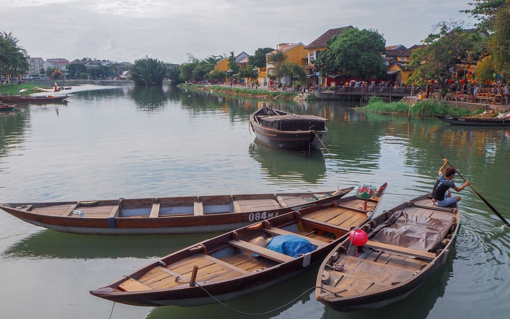 Trải nghiệm đi thuyền gỗ trên sông Thu Bồn khoảng 50 phút, ngắm cảnh sông nước và tận hưởng không khí trong lành