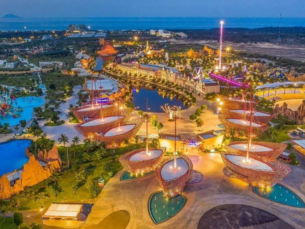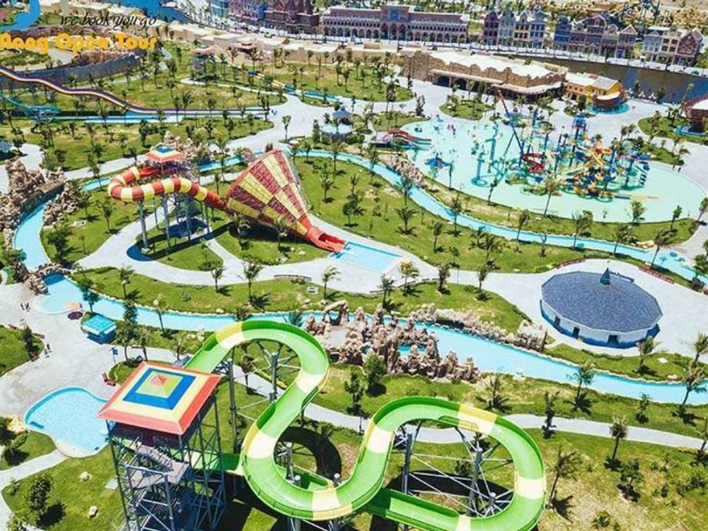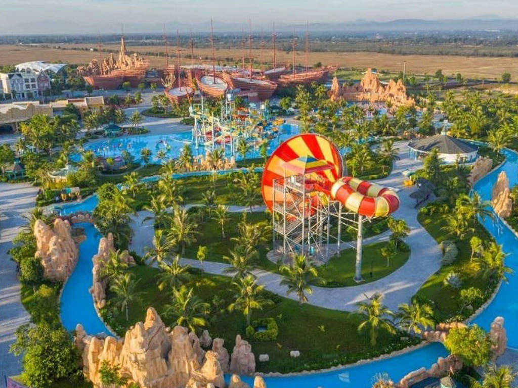 Công viên nước: Trượt máng tốc độ, hồ tạo sóng, đường trượt xoắn ốc.