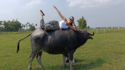 Trải nghiệm cưỡi trâu nước trên đồng ruộng.
