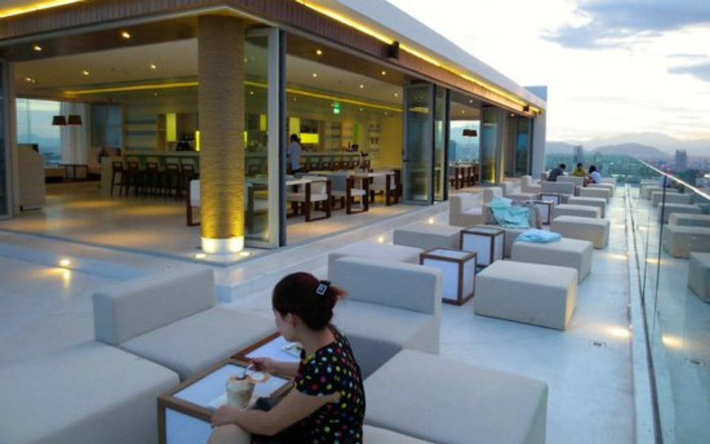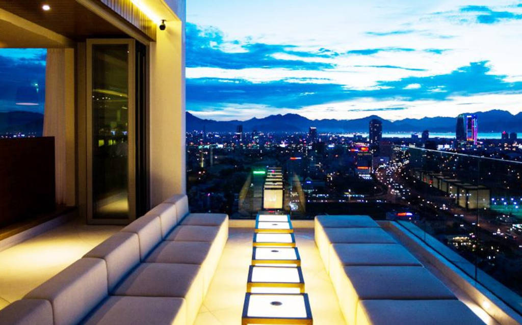 Ban đêm nhìn ra biển khơi và những ánh đèn lung linh từ thành phố Đà Nẵng làm cho những món uống thi vị hơn và thời gian thư giãn thú vị hơn.