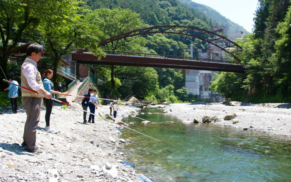 6. Bãi câu cá hồi quốc tế Hinohara Kanoto : Sông Kanoto là một con sông trong vắt được bao bọc bởi rừng cây xanh tươi. Đây cũng là bối cảnh cho ngư trường Hinohara Kanoto, một trung tâm câu cá thân thiện với gia đình, nơi bạn có thể đi bắt cá hồi vân. Khi bạn đã đánh bắt được, bạn có thể chọn cá mổ bụng và ướp muối miễn phí sẵn sàng để nướng ở đó và sau đó, mang về nhà hoặc thả trở lại nước