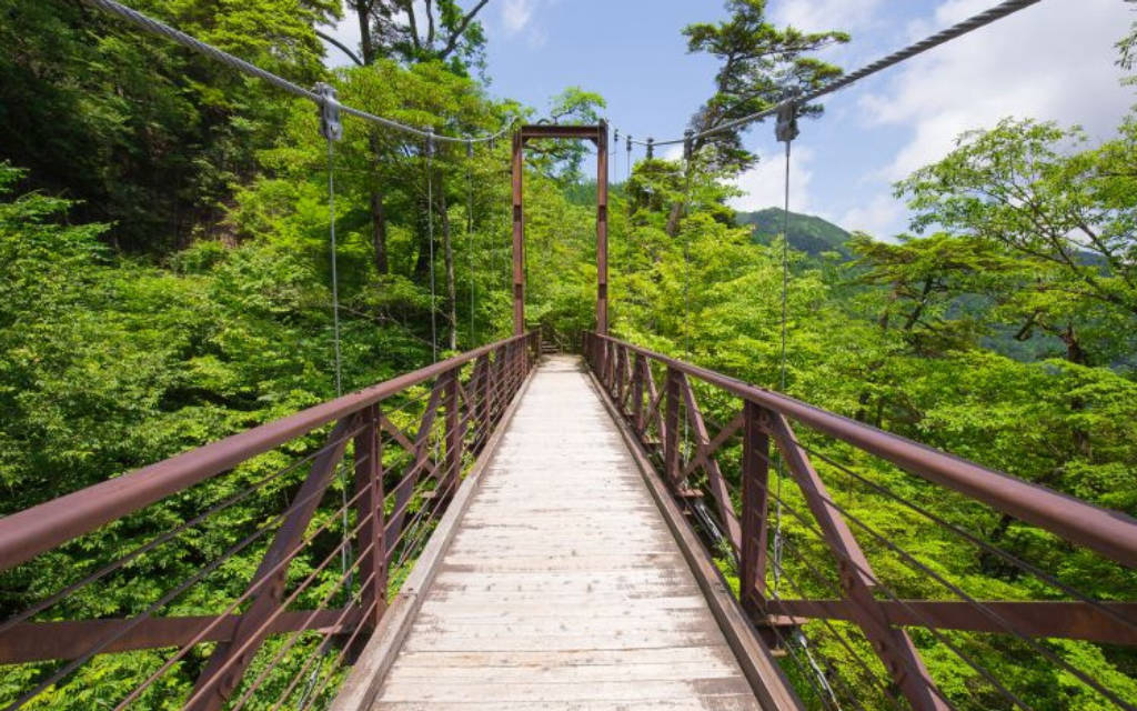 3. Thung lũng Hatonosu : Nơi đây là một trong những địa điểm được yêu thích nhất ở vùng Okutama phía tây Tokyo, Hatonosu là một hẻm núi xanh tươi rực rỡ suốt những tháng ấm áp hơn trong năm và càng nổi bật hơn khi lá thay đổi vào mùa thu. Sông Tama chảy qua những vách núi hiểm trở của hẻm núi và âm thanh sảng khoái của nước chảy ào ào vang vọng khắp khu vực. Một cây cầu treo vắt ngang qua khe núi, giúp bạn dễ dàng phóng tầm mắt ra xa những khung cảnh tuyệt đẹp.