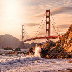 Cầu Cổng Vàng, một biểu tượng mang tính biểu tượng của San Francisco, là một kiệt tác của thiết kế Art Deco trải dài từ lối vào Vịnh San Francisco đến Thái Bình Dương. Hoàn thành vào năm 1937, cây cầu và các tòa tháp theo phong cách Art Deco cao chót vót vừa là một kỳ công về kỹ thuật vừa là một địa danh văn hóa.