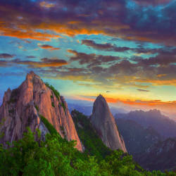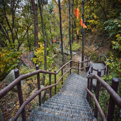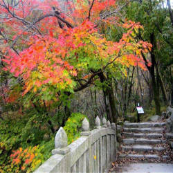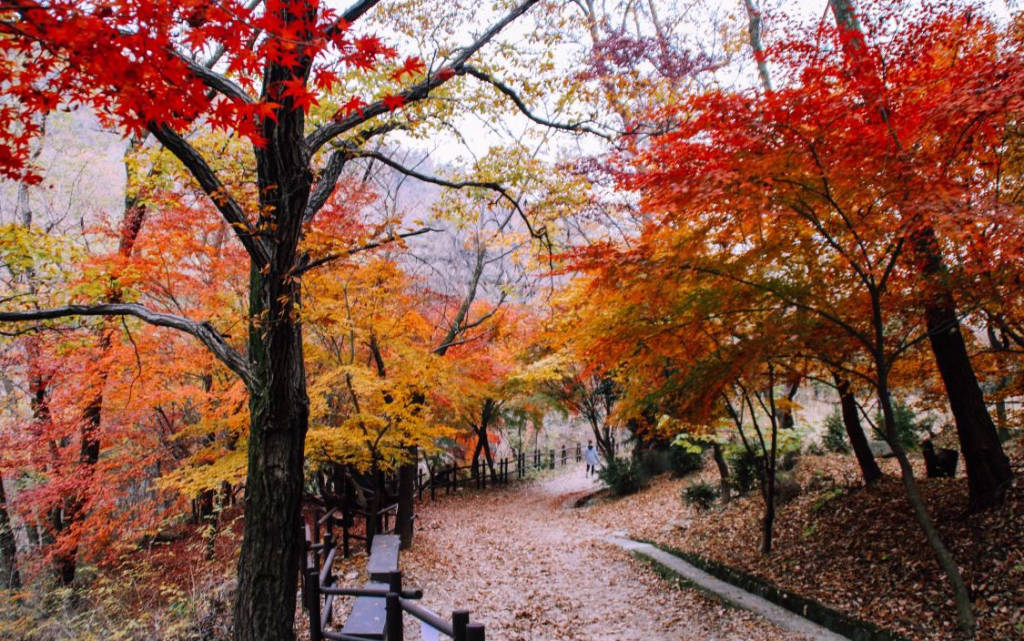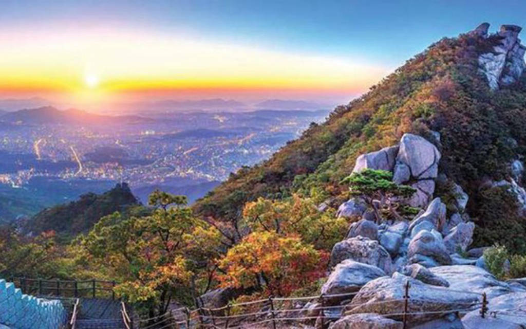 The park's many granite peaks and canyons have crystal-clear streams, creating a perfect harmony between mountain and water. The majestic mountaintop scenery with many poetic natural scenery, especially in autumn when the maple leaves turn orange and red everywhere, the fast flowing stream and the secluded temples of Bukhansan National Park attracts more than 5 million hikers and climbers annually.