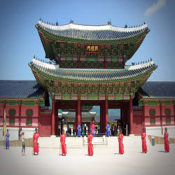 Today, visitors can enter Gyeongbokgung Palace through all four sides of the Palace. Gwanghwamun Main Gate in the south, Yongchumun Gate in the west, Sinmumun Gate in the north, and the entrance to the National Folk Museum of Korea on the east.